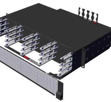 LANmark-OF 24 Ports Sliding Patch Panel, Snap-In Module, integrated Cable Manager, 1U, Black, Aginod